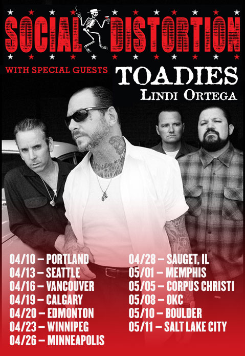 Social Distortion announces US/Canada tour dates with Toadies and Lindi Ortega. For show details and ticket info, click here.